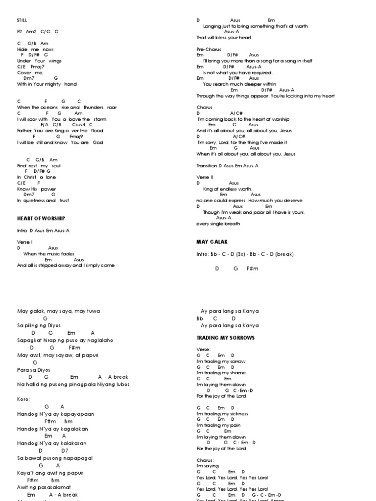 Trading My Sorrows ARTIST. G C Em D Im trading my sickness. Verse A D Im pressed but not crushed Fm E persecuted not abandoned A D Fm E Struck down but not destroyed A D Im blessed beyond the curse Fm E For His promise will.